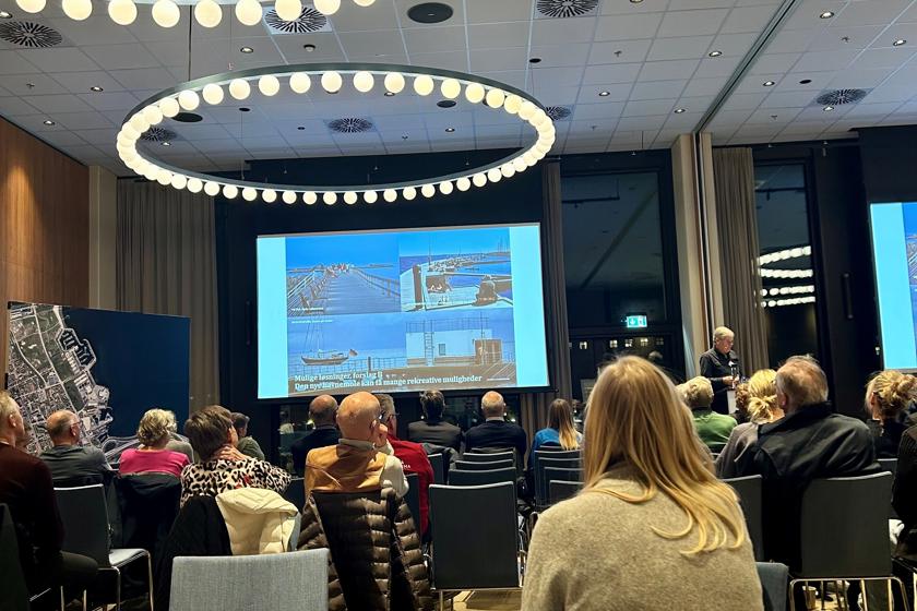 Det samme var tilhørerne, da Dan Hasløv viste og fortalte, hvordan selv noget så teknisk som udformning af en halvø, der skal fungere som område for tilslutningsanlæg, kan integreres i et samlet miljø, der kan fremme rekreative formål i området.