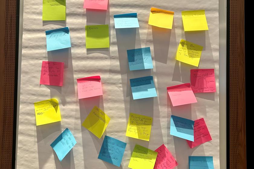 Nogle af de mange input blev opsamlet på post-its, og er siden blevet sorteret og bearbejdet, så det kan indgå i det videre arbejde med området.