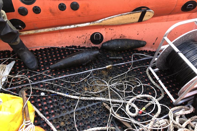 Søværnets Dykkertjeneste oplyser, at der var tale om to mortergranater, som senere samme dag blev detoneret under forsvarlige forhold.